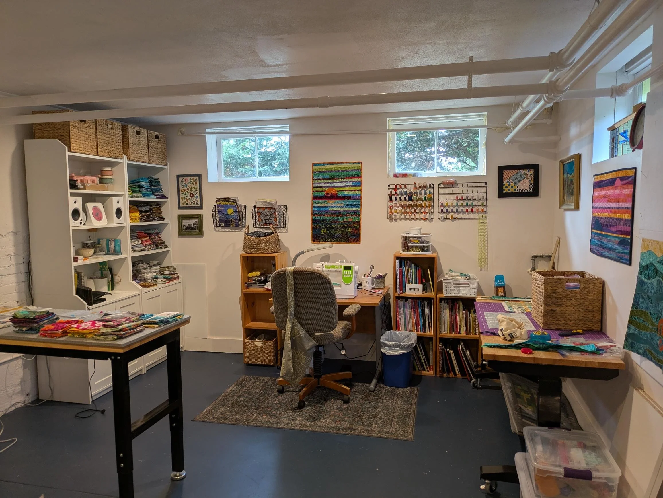 One area of the studio for my fabric work