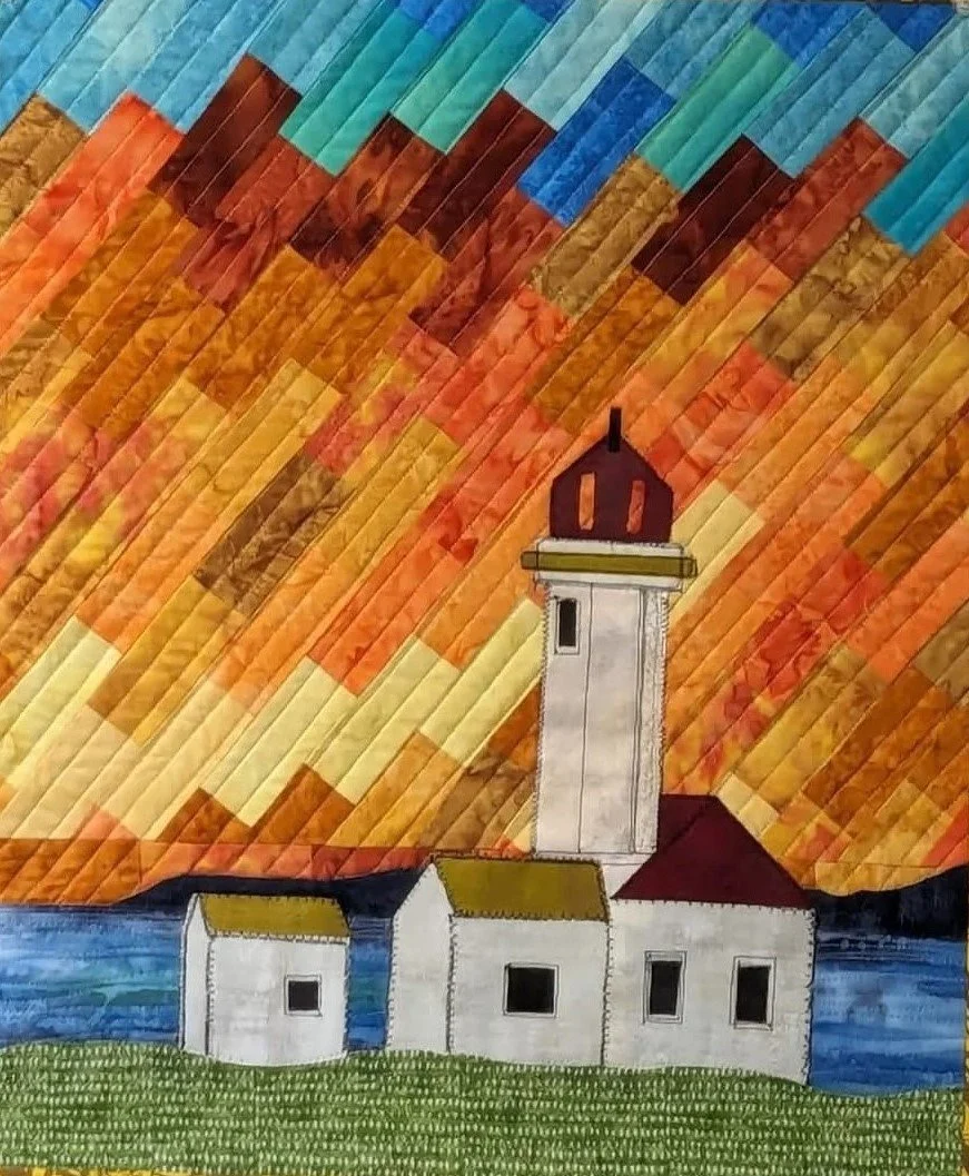 Point Wilson Lighthouse Feb 21 Written By Mediaspace Size: 18 x 21Made with: Designed and quilted, batiks and grunge.Price: NFS Mediaspace https://mediaspace.co